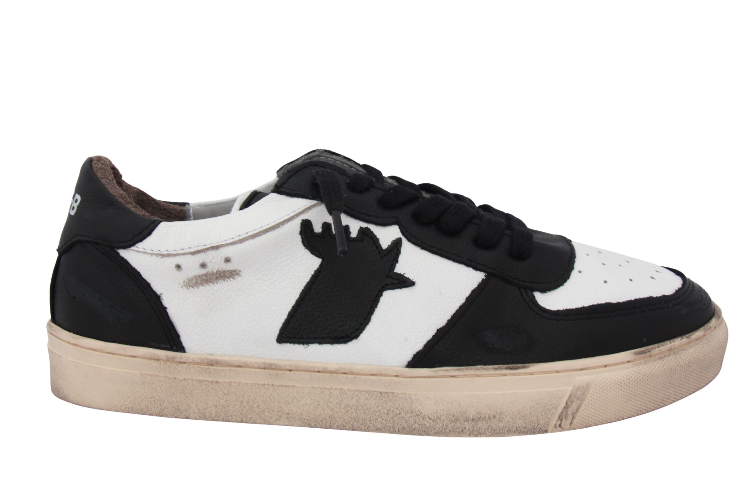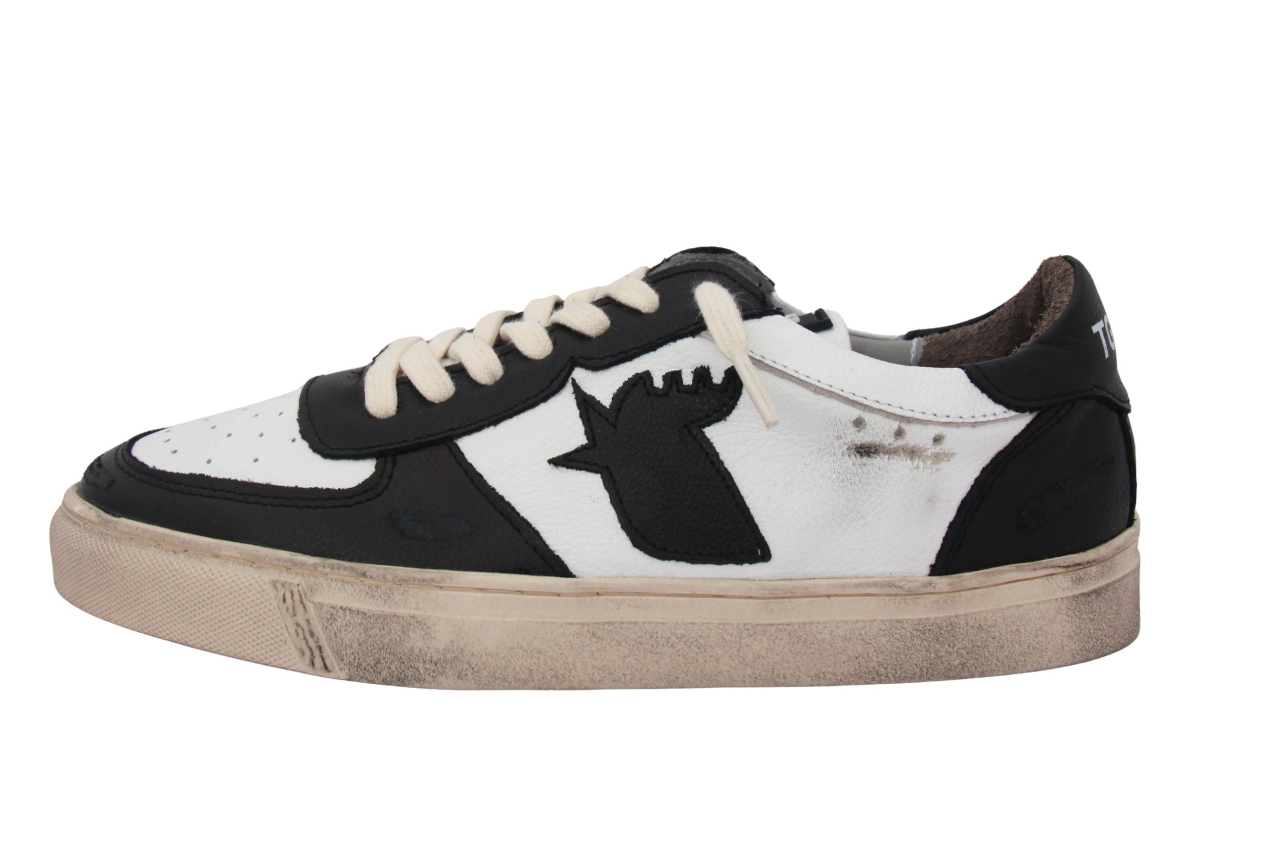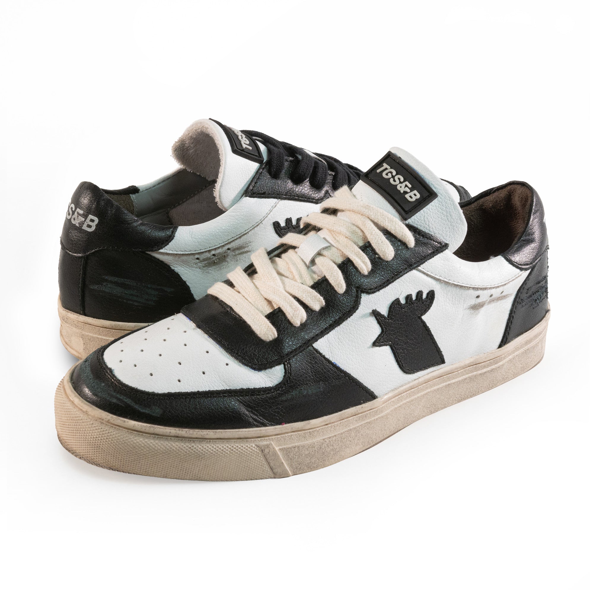 Color negro, piel de becerro, logo en el contrafuerte en contraste, logo en lengüeta, punta redonda, cierre con agujetas, suela plana de goma.