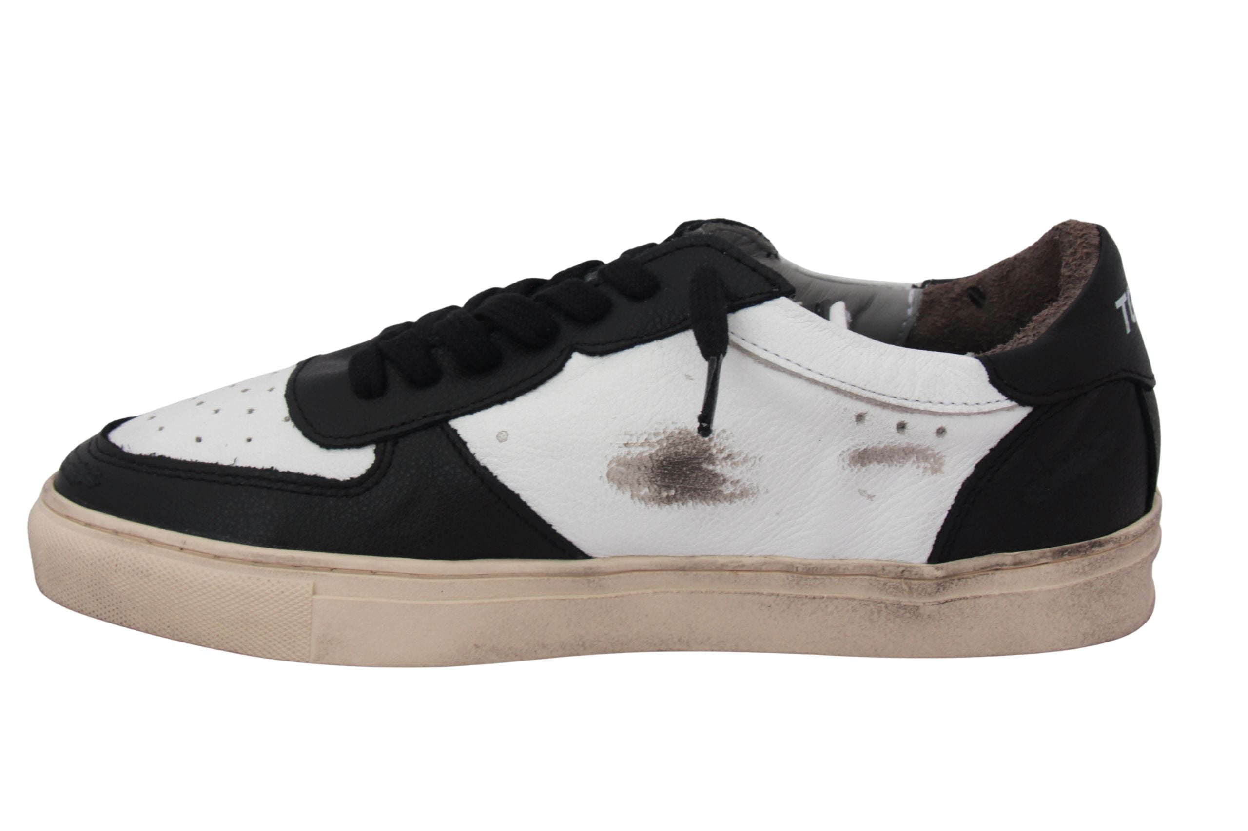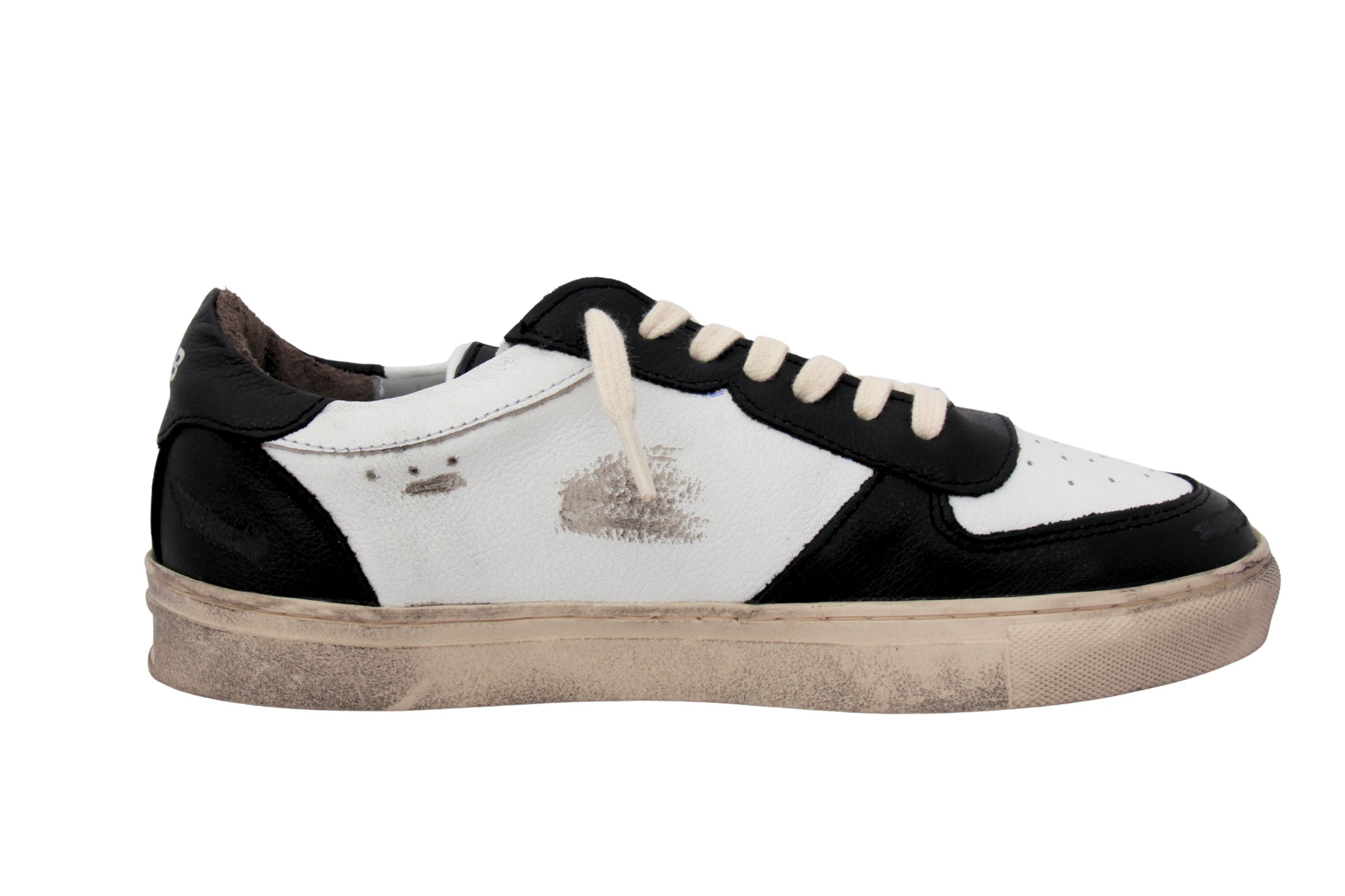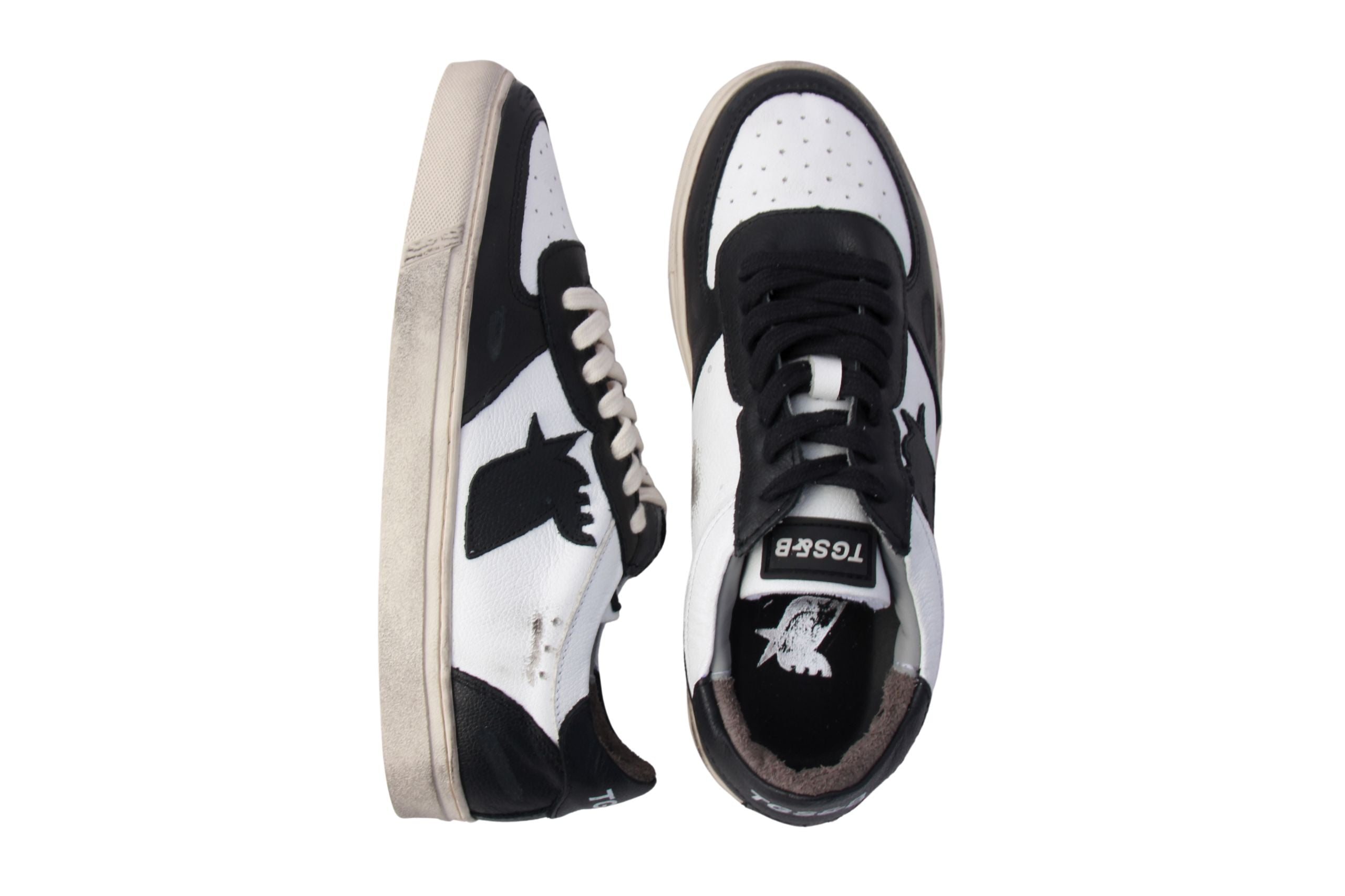 Color negro, piel de becerro, logo en el contrafuerte en contraste, logo en lengüeta, punta redonda, cierre con agujetas, suela plana de goma.